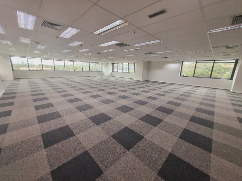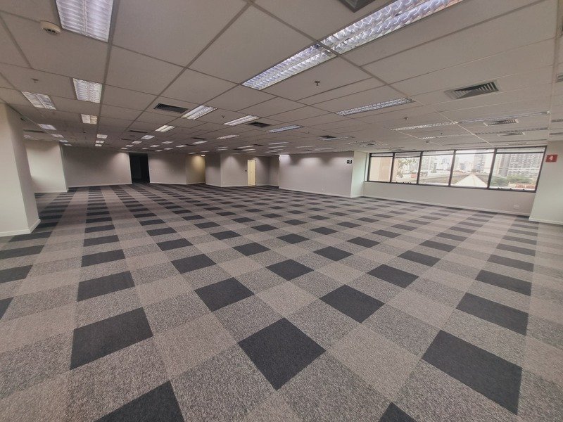 Apresentamos um excelente conjunto corporativo de 775 m² de área útil (886 m² de área total), composto por 2 salas unificadas, 13 banheiros, 21 vagas de garagem, com ar-condicionado, carpete, copa, armários e mesas em madeira MDF.