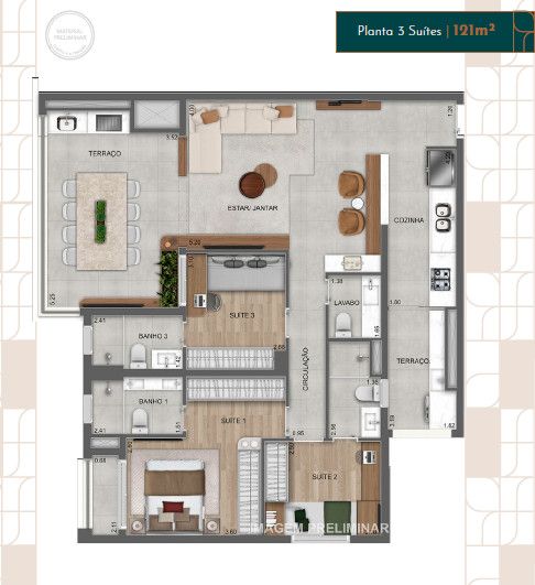 Área Privativa: 121 m²