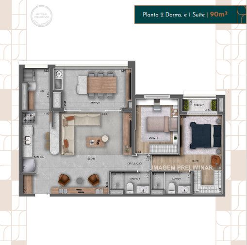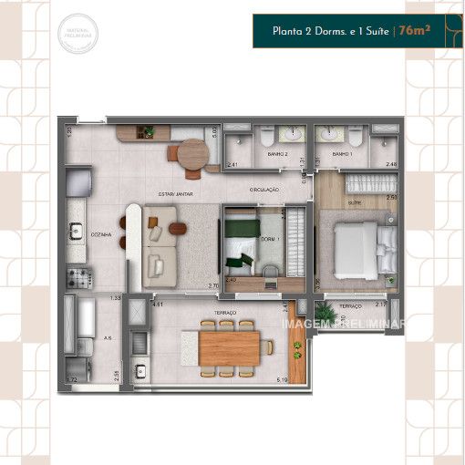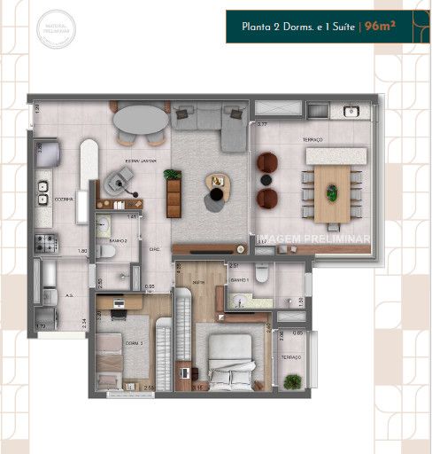 Com uma área privativa generosa de 121m², este imóvel foi projetado para proporcionar o máximo de bem-estar para você e sua família. São 3 dormitórios, todos suítes, garantindo privacidade e aconchego. A sala ampla e a cozinha americana integrada criam um ambiente perfeito para receber amigos e familiares. Desfrute de momentos relaxantes na sacada com churrasqueira, apreciando a vista da cidade.