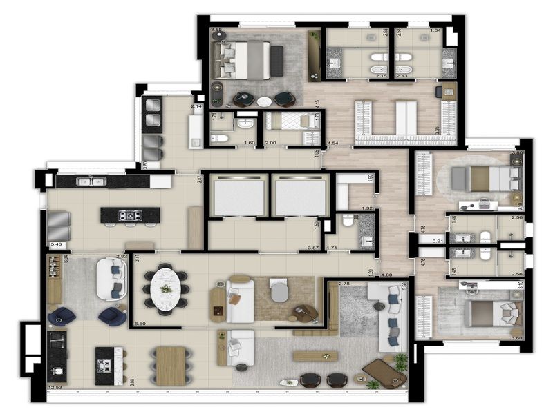 Apartamento de altíssimo padrão com planta inteligente, sem colunas, que proporciona amplitude e elegância incomparáveis.