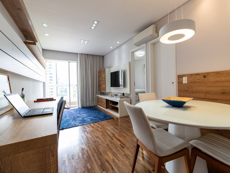 Excelente apartamento na Vila Olimpia com 57 m² totalmente mobiliado: 1 dormitório 2 banheiros Varanda Sala Cozinha Área de serviço 1 vaga de garagem A localização é bastante conveniente, com proximidade a importantes pontos da região: 650 metros do Shopping Vila Olímpia 500 metros da Avenida Brigadeiro Faria Lima 800 metros da Avenida Juscelino Kubitschek O condomínio oferece diversas comodidades para os moradores, incluindo: Espaço Gourmet Academia Sauna Sala de Massagem Espaço Pet Agende agora uma visita com o corretor!