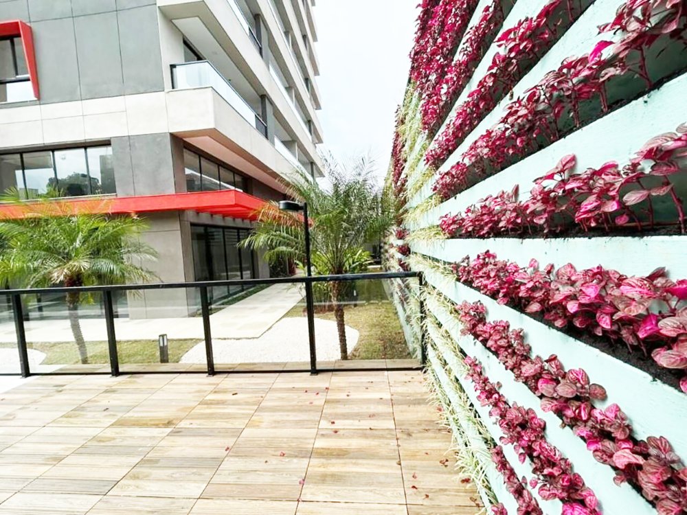 Possui academia, área para as crianças, espaço para festas, espaço gourmet e jardim.