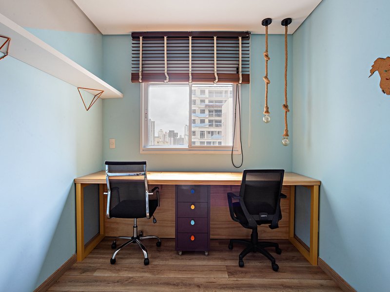 Três dormitórios com ar-condicionado, sendo uma suíte e um escritório;